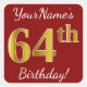 Red, Faux Gold 64th Birthday + Custom Name Sticker
