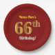 Red, Faux Gold 66th Birthday + Custom Name Paper Plates