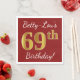 This simple paper napkin design features a message like "Betty-Lou’s 69th Birthday!", with the "69th" having a faux gold-like appearance, on a red colored background. The name can be personalized. It could be used at a birthday party for somebody who is celebrating their sixty ninth birthday. [~Z0000080]
