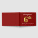 This guest book design features the ordinal number "6th" with a faux gold-like appearance. It also features a custom name, and a red colored background. It could be used at a party for somebody celebrating their sixth birthday. [~Z0000055]