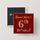 Red, Faux Gold 6th Birthday, With Custom Name Pinback Button