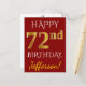 Red, Faux Gold 72nd Birthday + Custom Name Postcard