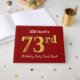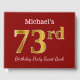 This guest book design features the ordinal number "73rd" with a faux/imitation gold-like appearance. It also features a custom name, and a red colored background. It could be used at a party for somebody celebrating their seventy third birthday. [~Z0000055]