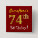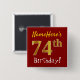 Red, Faux Gold 74th Birthday, With Custom Name Pinback Button