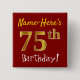 Red, Faux Gold 75th Birthday, With Custom Name Pinback Button