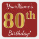 Red, Faux Gold 80th Birthday + Custom Name Sticker