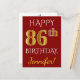 Red, Faux Gold 86th Birthday + Custom Name Postcard
