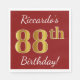 Red, Faux Gold 88th Birthday + Custom Name Napkins