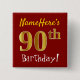 Red, Faux Gold 90th Birthday, With Custom Name Pinback Button