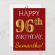 Red, Faux Gold 96th Birthday + Custom Name Postcard