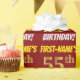 This wrapping paper design features a message like "FIRST-NAME’S 55th BIRTHDAY!", with the "55th" having a faux/imitation gold-like color appearance, and with the name and "BIRTHDAY" in a fun, bold font. The name can be personalized, and the background is colored red. Wrapping paper like this could perhaps be used when wrapping birthday gifts being given to somebody in celebration of their fifty fifth birthday. [~Z0000204]