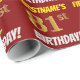 This wrapping paper design features a message like "FIRSTNAME’S 81st BIRTHDAY!", with the "81st" having a faux/imitation gold-like color appearance, and with the name and "BIRTHDAY" in a fun, bold font. The name can be personalized, and the background is colored red. Wrapping paper like this could perhaps be used when wrapping birthday gifts being given to somebody in celebration of their eighty first birthday. [~Z0000204]