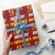 This wrapping paper design features a message like "FIRST-NAME’S 97th BIRTHDAY!", with the "97th" having a faux/imitation gold-like color appearance, and with the name and "BIRTHDAY" in a fun, bold font. The name can be personalized, and the background is colored red. Wrapping paper like this could perhaps be used when wrapping birthday gifts being given to somebody in celebration of their ninety seventh birthday. [~Z0000204]