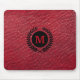 Red Faux Leather with Laurel Wreath Monogram Mouse Pad