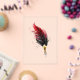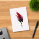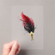 Artistically drawn, antique fountain pen embellished with dark red feather on white background.