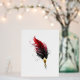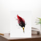 Artistically drawn, antique fountain pen embellished with dark red feather on white background.