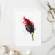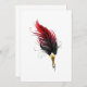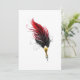 Artistically drawn, antique fountain pen embellished with dark red feather on white background.