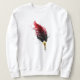 Artistically drawn, antique fountain pen embellished with dark red feather on white background.