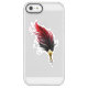 Artistically drawn, antique fountain pen embellished with dark red feather on white background.