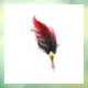 Artistically drawn, antique fountain pen embellished with dark red feather on white background.