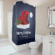 Red Festive Santa Hat On Blue With Custom Text Shower Curtain