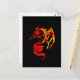 a decorative artwork of a dragon in red and orange flamelike colors on a black colored postcard.