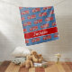 A cute red and blue personalized fire truck baby blanket. Makes a wonderful baby shower gift for the firefighter family in your life!