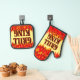 Red Flames Cookout BBQ Saying Oven Mitt & Pot Holder Set