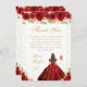 Red Floral Brunette Hair Princess Sweet Sixteen Thank You Card