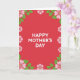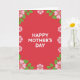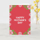 This design shows a rich red background that feels warm and inviting, like a close hug ❤️. Centered in the middle is a short celebratory message in bright white, set in rounded, easy-to-read lettering that looks friendly and direct. The text sits neatly within an open space, giving it room to breathe and making it the first thing your eyes land on. Around the edges, a floral border wraps the card like a gentle embrace, suggesting closeness and affection through its soft shapes and careful spacing. Light pink blossoms mingle with fresh green leaves, creating a tender contrast against the red, as if the flowers are leaning in toward the words. Each flower has a small yellow center 🌼, with fine lines radiating outward to add a sunlit, caring touch. The leaves curve in different shades of green, and the blooms and foliage form a continuous frame along the perimeter of the card.