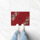 Welcome guests with a striking blend of bold color and soft florals. This red geometric floral door mat features a rich red‑orange background, elegant gold line accents, and beautifully arranged neutral florals that create a warm, inviting entryway.