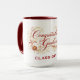 A graceful graduation-themed script design framed by red floral swirls, featuring a customizable “Class of 20YY” year for personalized celebration themes.