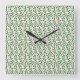Red Floral Leaf Pattern, Dark Botanical Seamless Square Wall Clock