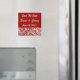 It was a bit smaller than expected, but I was too excited to check dimensions. The product itself send well printed though the grey text is a bit paint. Magnet worked perfectly on my fridge.