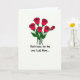This design shows a bouquet of six red flowers outlined in black, gathered in a slightly uneven cluster that feels like it was picked with someone special in mind ❤️. The petals are filled with rich red color, and the leaves and slim stems are a deep green, leaning together as they narrow toward the base. The flowers sit centered in the upper half of the card, leaving plenty of white space that makes the bouquet feel like a quiet gift held out with care. Beneath the stems, a friendly, hand-drawn style line of text reads “Red roses for the one I call Mom...” in dark lettering. The words sit low on the page and feel like they’re spoken softly, like a close note between family members 👩. The simple layout keeps your attention on the tender pairing of the bouquet above and the message below, with nothing else competing for the eye. The background stays plain white, and the only other details are the black outlines around each bloom and leaf, plus the small ellipsis at the end of the line.