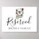 Create an elegant reserved sign for your wedding day. A monogram crest decorated with burgundy red flowers is at the top to give it a luxe and sophisticated vibe. Reserved is written in a very cool and trendy script. The reserved title, name or group replaces the "bride's family" place holder text. DIY projects like this can let you personalize your wedding experience at very affordable cost. All of the text can be replaced, so you can create any sign you wish. You can change the text properties, the background color and the size of the sign.