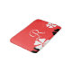 This minimalist floral plush bath mat is a great gift for a wedding or housewarming. Background is red with black and white flowers; Monogram is white. All Rights Reserved © 2015 Alan & Marcia Socolik.