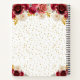 This elegant and glamorous Quinceañera guest book features a beautiful princess with dark hair in a tiara and red ball gown. The text combines handwritten script and modern sans serif fonts for a classy and sophisticated look. The floral arrangements and gold confetti create the perfect blend of rustic and chic.