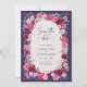 Red Floral Save the Date. Announce your wedding in unforgettable style with this sophisticated save-the-date card featuring a beautifully painted floral wreath bursting with rich jewel tones. Hand-illustrated roses, anemones, cosmos, daisies, and delphinium in shades of pink, deep reds, burgundy, blues, and purple, accented with lush greenery and eucalyptus, make a striking statement against a deep navy blue background. The elegant script highlights the most important detail—your special date—while the luxurious design ensures guests mark their calendars with anticipation. Personalize with your preferred wording, fonts, and sizes, and make this timeless design uniquely yours. Secure your spot on their calendar with a save-the-date that captivates at first glance. NOTE: The Text is Navy Blue.