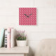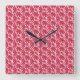 Red Floral Seamless Pattern, Elegant Flower Repeat Square Wall Clock