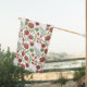 Red floral seamless pattern on white background house flag
