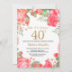 Red Floral Surprise 40th Birthday Gold Glitter Invitation