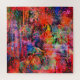 Vibrant colors and intricate patterns blend, creating an abstract scene filled with swirling shapes and floral motifs. The interplay of warm and cool tones, along with textured layers, adds depth and movement.