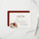 Coordinate your seasonal celebration with this elegant winter RSVP card. Adorned with rich burgundy florals, soft ivory blooms, and pine greenery, it’s perfect for Christmas-themed weddings. Includes checkboxes for attendance and meal preferences to make guest responses seamless and stylish.