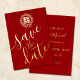 Red Floral wreath Chinese wedding save the date Foil Invitation