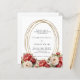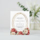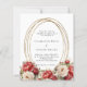 A white background decorated with red and white roses, florals. A faux gold oval frame. Personalize and add your names and details.