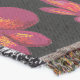 A quality printed throw has its advantages. This is a much finer weave throw than its loopier cousins, and though lighter, it is worth the investment for custom room accessorizing. The back is much prettier than the typical brown, and the fringe on the long sides very vivid, the selvage nicely done. Before photographing, I washed the throw in cold water, delicate, with a thicker woven throw the same size. On tumble dry low, this throw was dry in half the time as the other. This is a very practical quality if you use throws for furniture covers or to wrap up in frequently. The sleekness of the fabric makes it a great layer for accenting or protecting without the feeling of sitting on too much stuff. Perfect for napping or when you feel a light chill coming on. The color printing is beautiful and on this fabric, matched the design and color of my Photoshop image. This is an advantage for blending room fabrics and colors. The fringe on the short sides prints the colors from the design image and therefore varies from the side fringe. I streaked a white fractal line through the plaid pattern to give the illusion of weaving. This printed as crisp as an illusory thread, and put some white in the short side fringe, showing another advantage of print vs loomed- for artistic purposes, line lines, detail, and color integrity can be planned and preserved. My loomed throws have color limitations and more of a needlepoint texture. Print throws reproduce an exact image. The throw felt a little stiff straight out of the package, but this went away in the first delicate wash. Of course I searched the wash water for ink or bleeding and there was none.