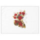 Red peacock eyed flower butterfly with red textured wing, decorated with composition of red, artistically painted roses with golden stems and leaves on white background.