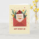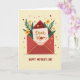 The front design shows a stylized crimson envelope centered on a pale cream background, its flap slightly open and edged with thin golden lines that feel like a gentle hug ❤️. From inside, a blush-colored card peeks out with the words “Dear Mom” near the top in dark red lettering, giving the note a close, affectionate tone. The “o” in “Mom” is replaced by a red flower, like a small gift tucked into the message. Around the envelope, leafy green stems and simple yellow daisy-like blooms frame the scene, adding a friendly, caring mood 🌼. Tiny red and yellow dots and small star shapes are scattered across the background, like confetti floating between quiet moments of appreciation. Along the bottom edge, “HAPPY MOTHER’S DAY” appears in uppercase red letters, centered and easy to read. The overall palette balances warm reds and sunny yellows with deep greens against the soft cream backdrop. Golden linework outlines the envelope while the red flower “o” sits neatly within the word “Mom.”