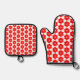 Red Flower Design Oven Mitt & Pot Holder Set